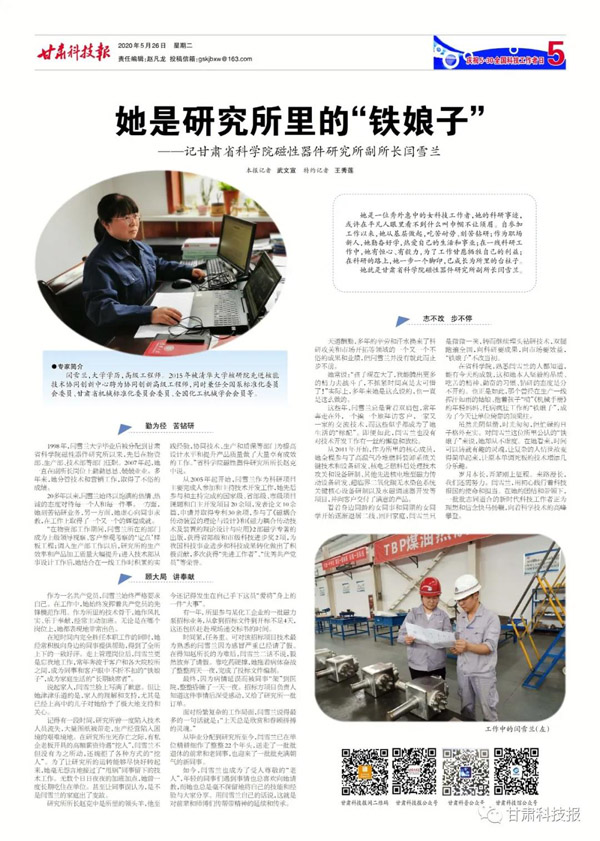 【致敬新時代 禮贊科學(xué)家◎科學(xué)人生】她是研究所里的“鐵娘子”——記甘肅省科學(xué)院磁性器件研究所副所長閆雪蘭