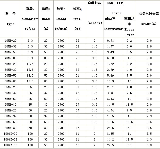 MZ無軸密封永磁傳動自吸泵具體參數(shù)參照FFC型泵參數(shù)表選型。